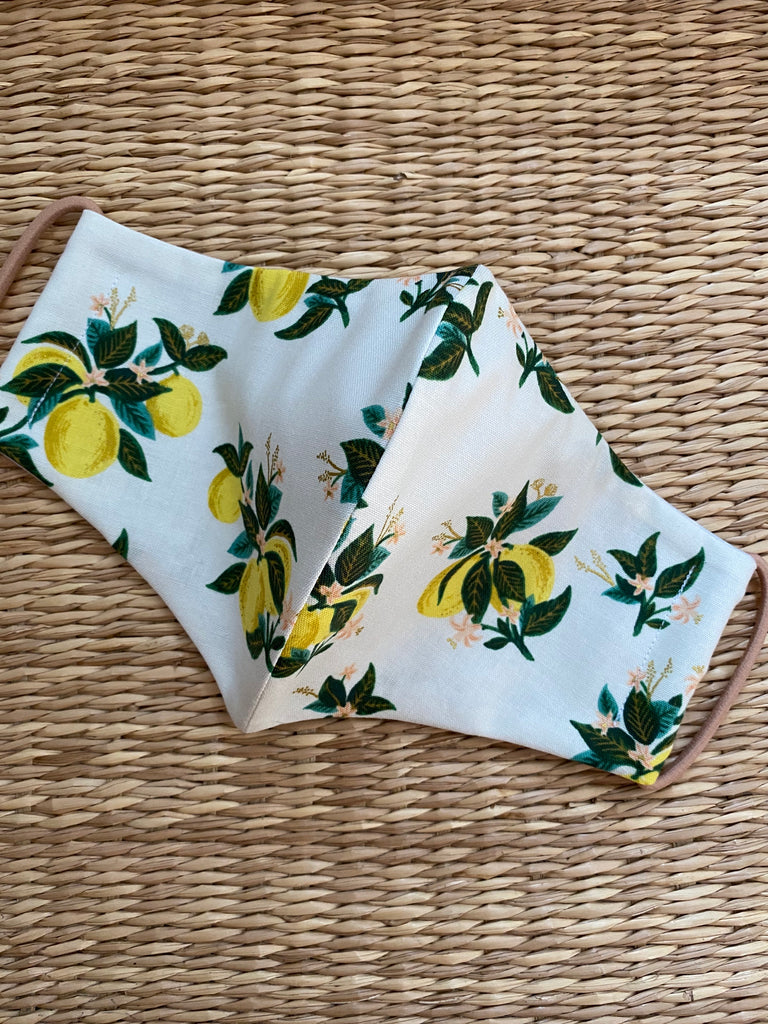 Re-usable Cotton Face Mask - Adult Size in a Rifle Paper Co. print - Lemon blossom.