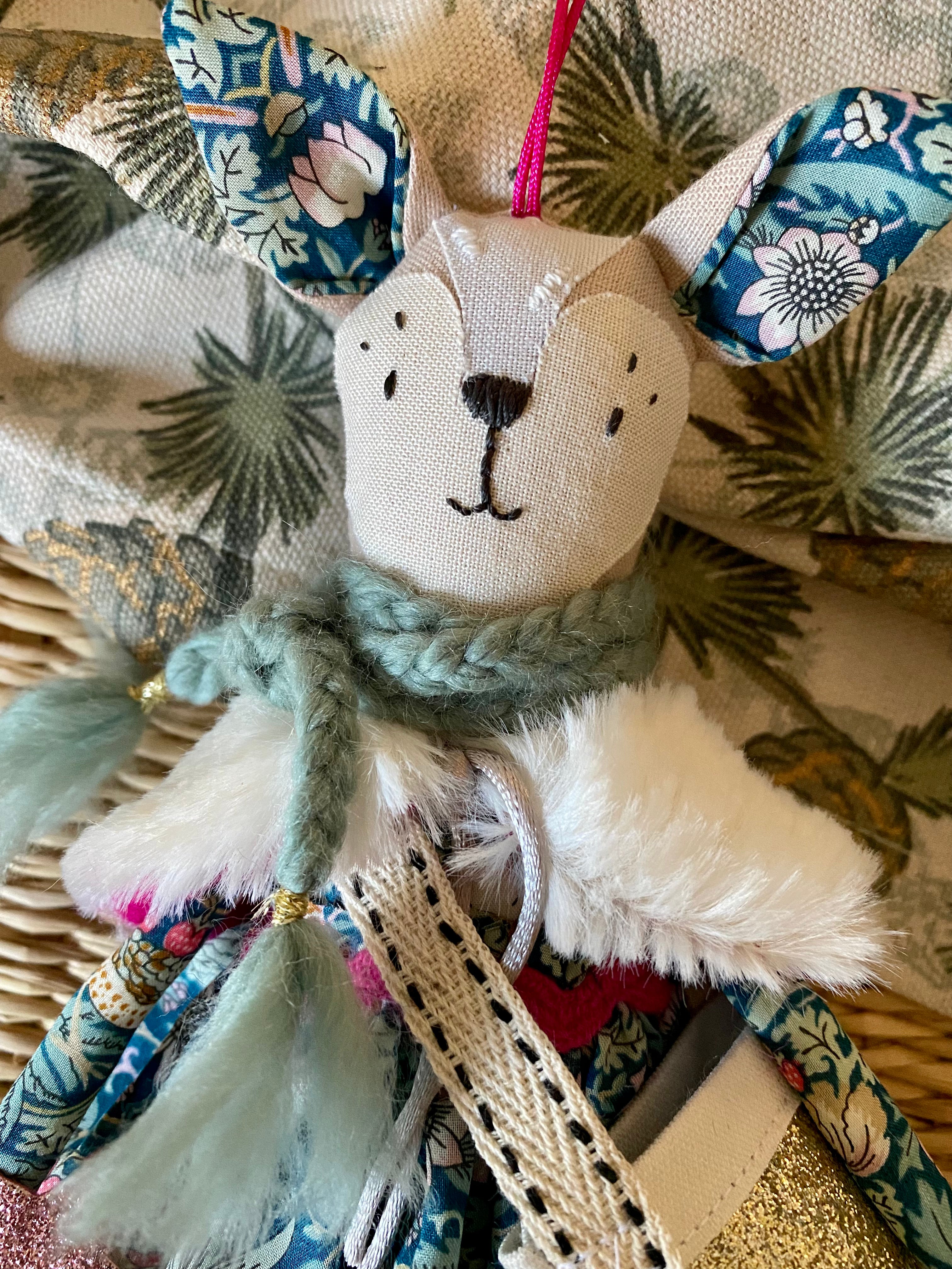 This Wish upon a Star TillyBob decoration is a perfect festive addition and I’m thrilled to be back making again! Following the hugely popular Angel decoration, these beautiful friends each bring their own little star to wish upon as well as a bag to keep the wish safe. Each decoration measures approx 20cm tall (excluding the ears!), is complete with a set of handmade accessories. Each one is unique, completely handmade by myself, and wears a Liberty Print skirt, cape and bag and holds their magic star.