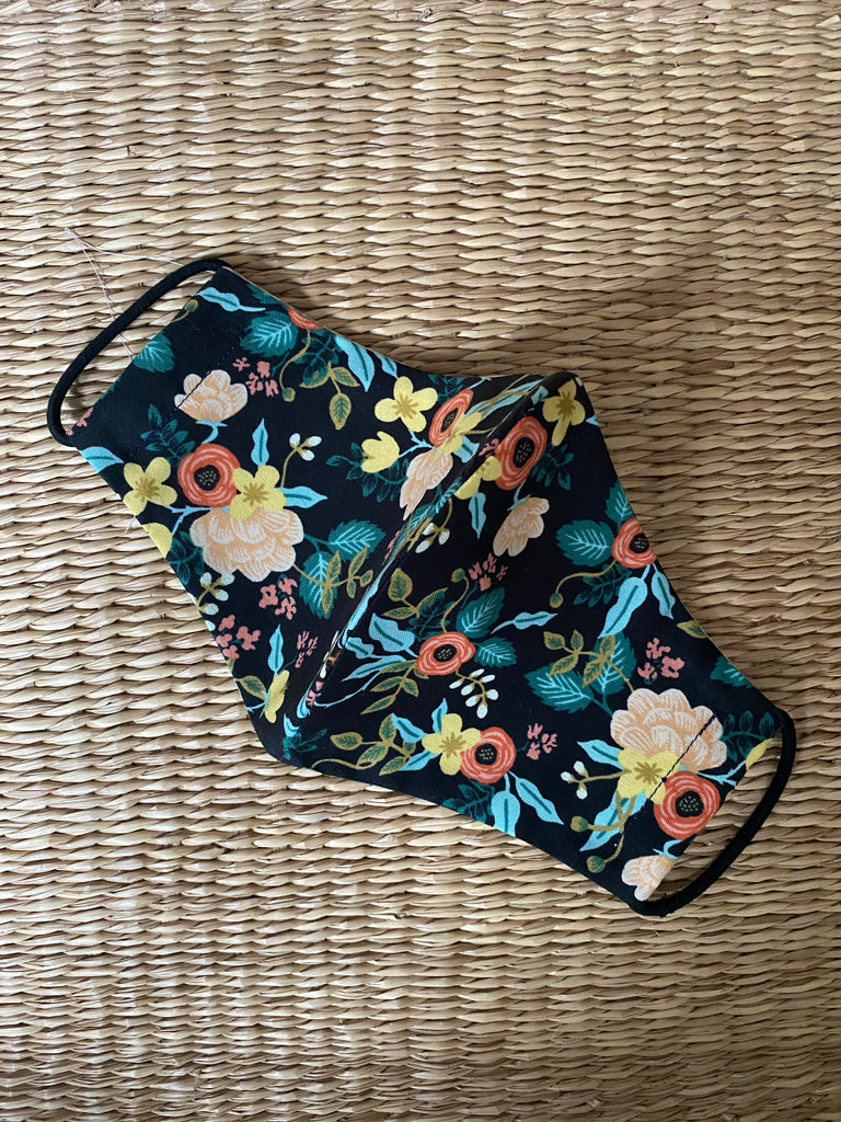 Re-usable Cotton Face Mask - Adult Size in a Rifle Paper Co. print - Birch Black.